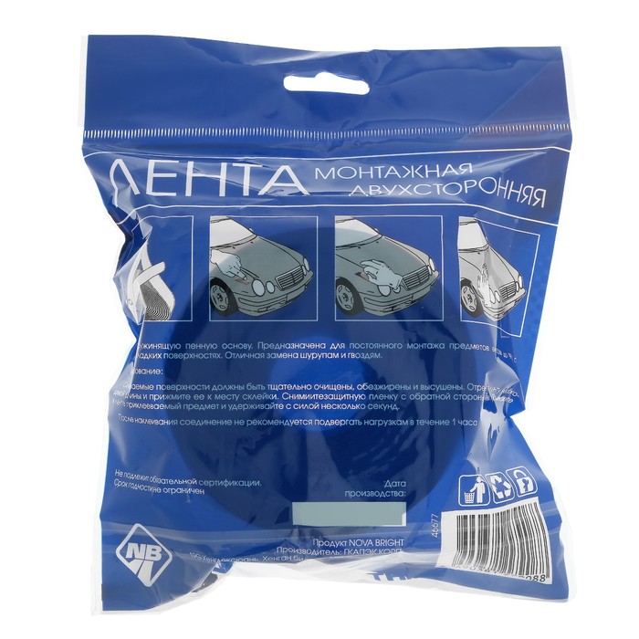 The adhesive tape Nova Bright is a mounting element that is able to withstand heavy loads. The tape does not crack, does not change color even with prolonged use. A bilateral sticky surface is ideal for connecting products from various materials. Suitable for car work.