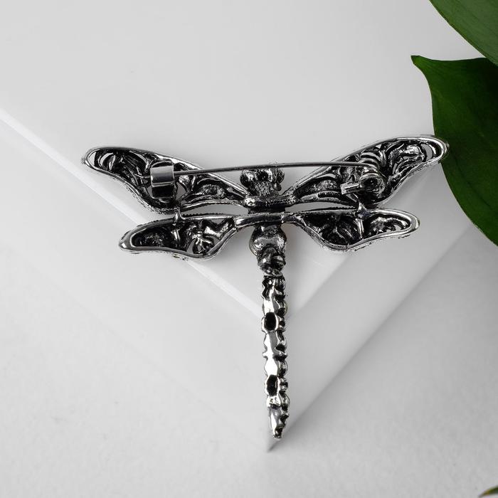 Brooch "Dragonfly" openwork, black-green color in black silver