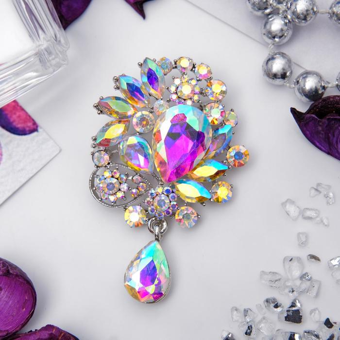 Brooch "Empress" radiance, rainbow color in silver
