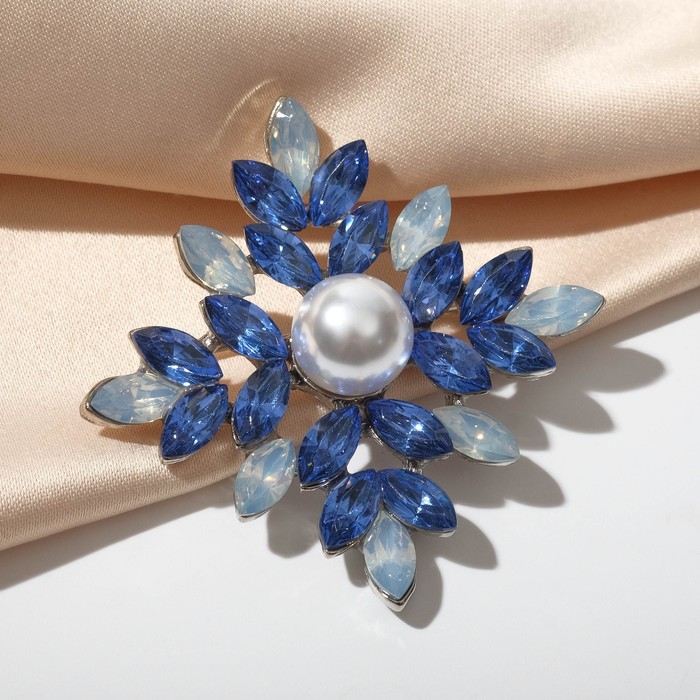 Brooch "Empress" rhombus, white-blue color in silver