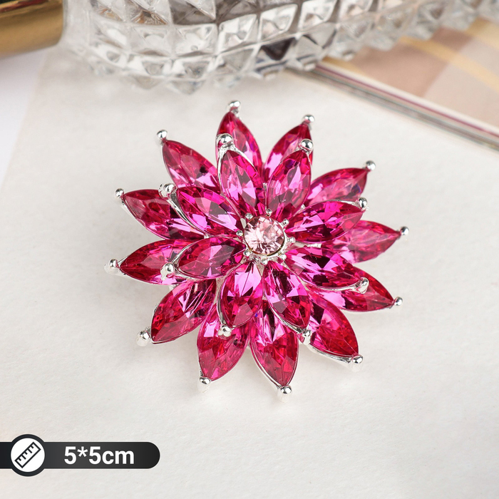 Brooch "Flower" chrysanthemum, raspberry color in silver