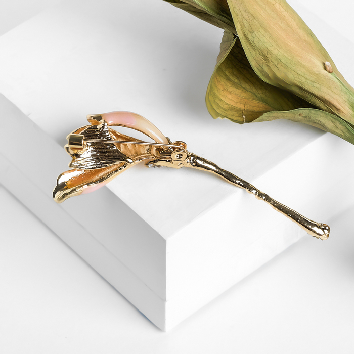 Brooch "Flower" Iris, beige color in gold