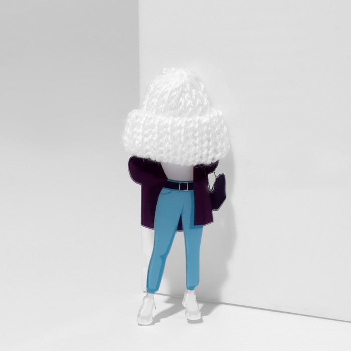 Brooch "Girl" in jeans, colored in silver