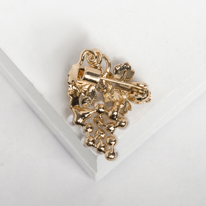 Brooch "Grapes" mini, white color in gold