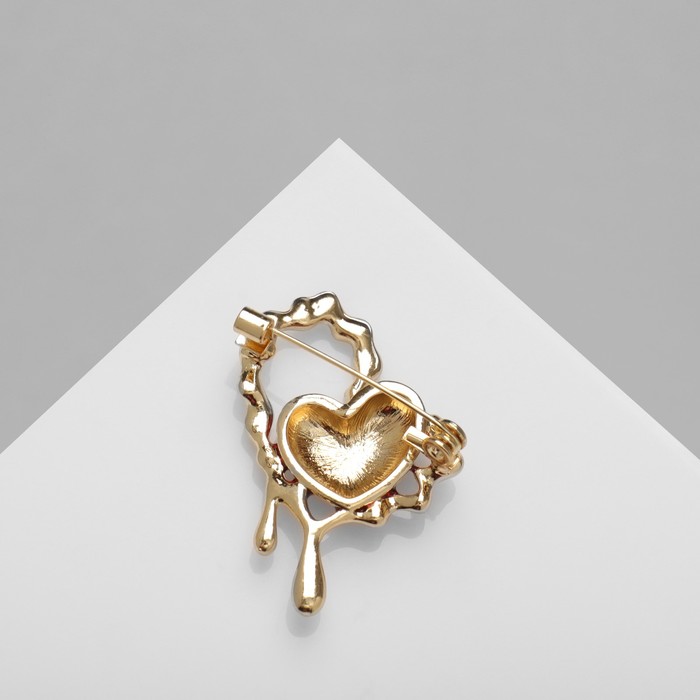 Brooch "Heart" Abstract, red color in gold