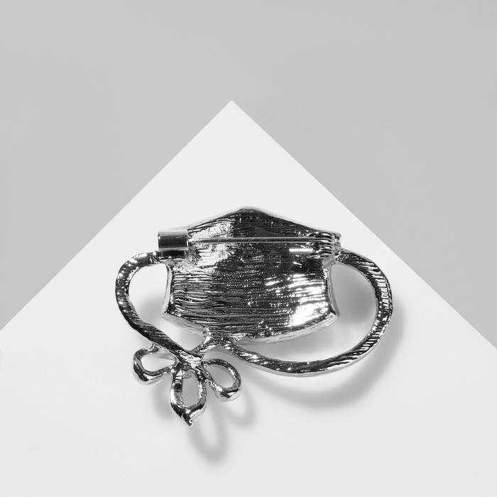 Brooch "Mask" Medical, white color in silver