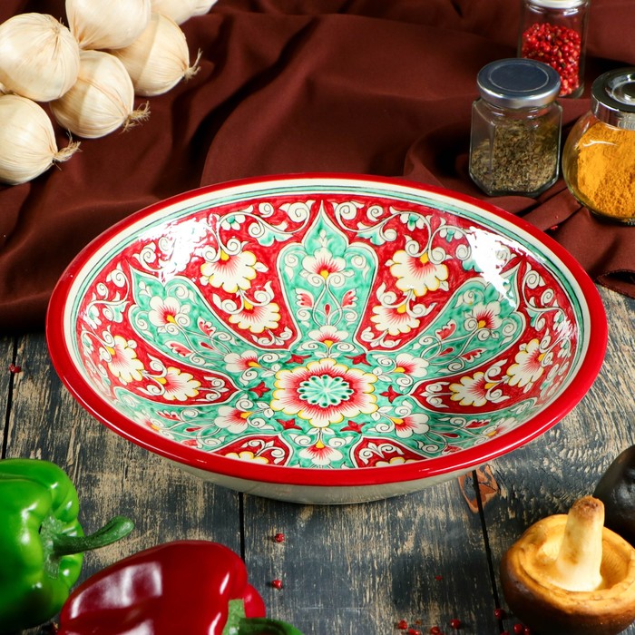 Buditsa Rishtan ceramics "Patterns", 29 cm, red
