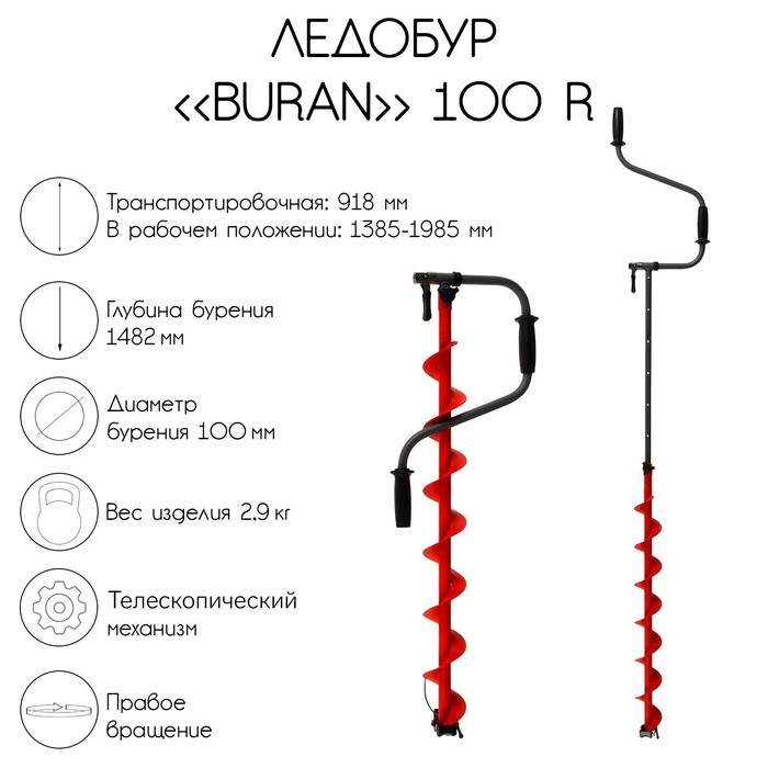BURAN BURAN 100R with a solid screw of right rotation ensures the rapid release of the hole from the shoga, thereby reducing the force of the fisherman.