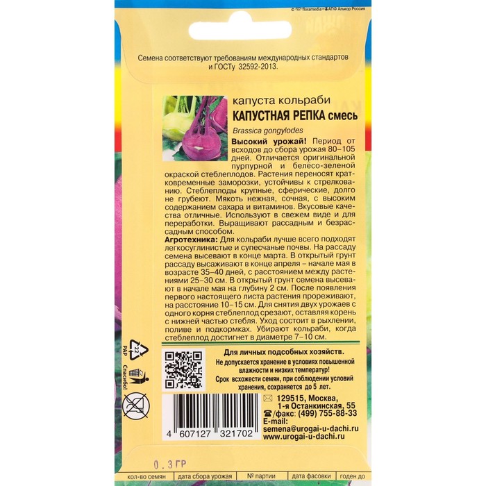 The period from seedlings to harvest 80-105 days. It differs in the original purple and white-green coloring of the stalks. Plants carry short -term frosts, resistant to shooting. The stalks are large, spherical, do not rude for a long time. The pulp is delicate, juicy, with a high sugar and vitamins content. The taste is excellent. Used fresh and for processing. Grow a seedling and unbridled way.