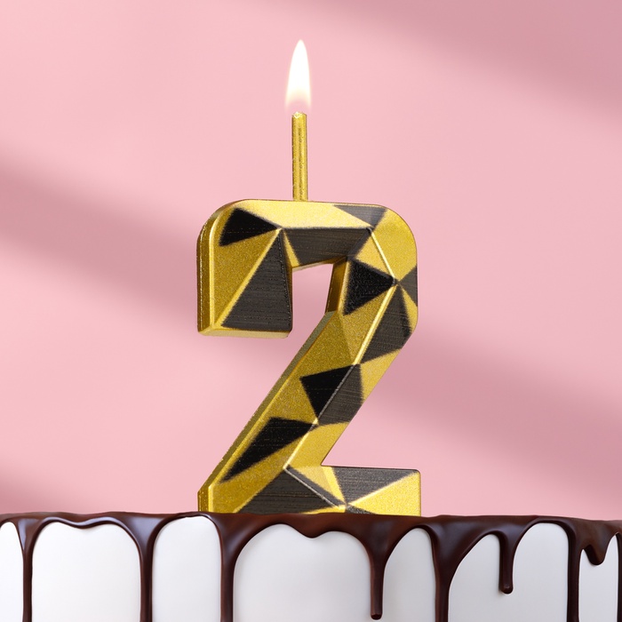 Candle for Cake "Almaz", number "2", gold with black