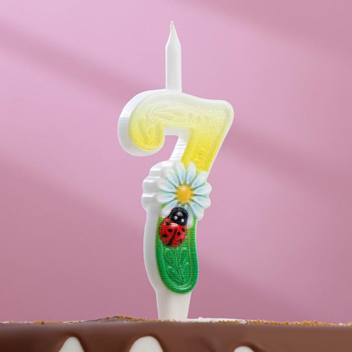 Candle for the cake "Chamomile", 10.2 cm, multi -colored number "7"