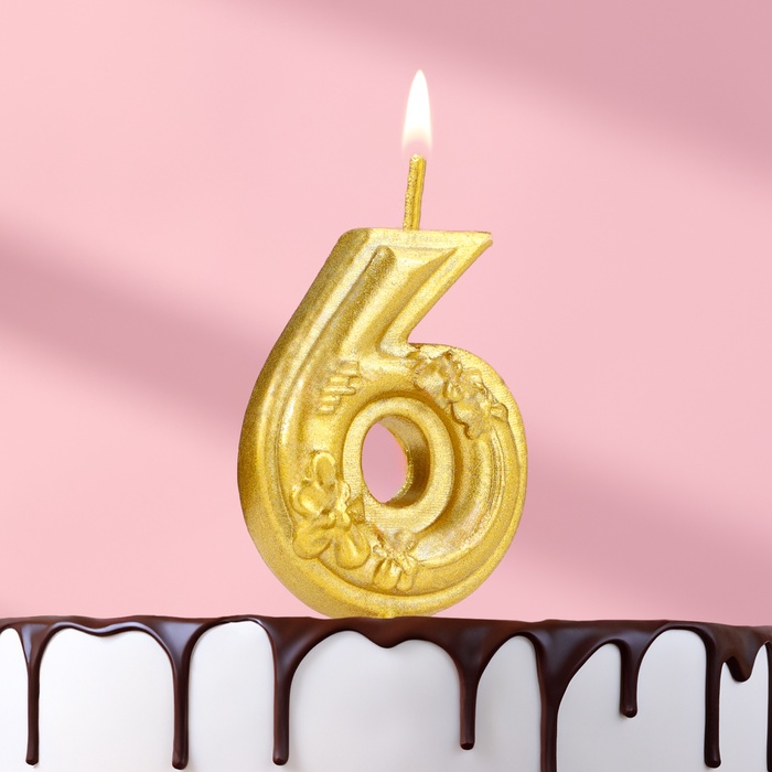 Candle for the Cake "Flowerers", number "6", golden