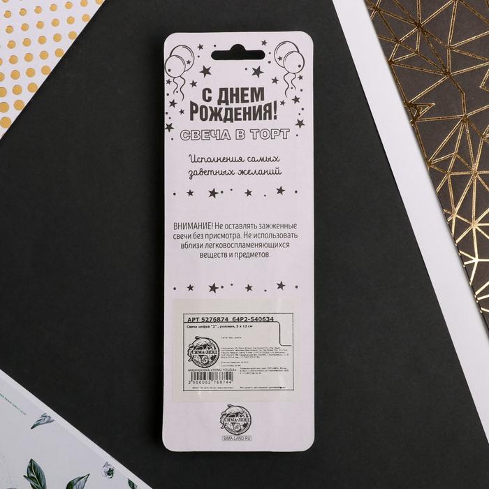 Candle for the cake, the number "2", pink.