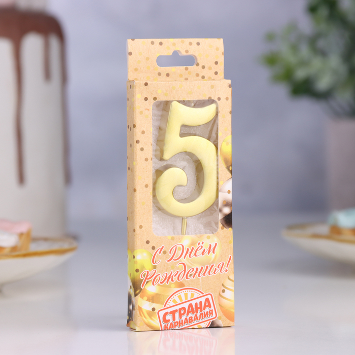 Candle in the cake number "5", 5.3 cm, gold