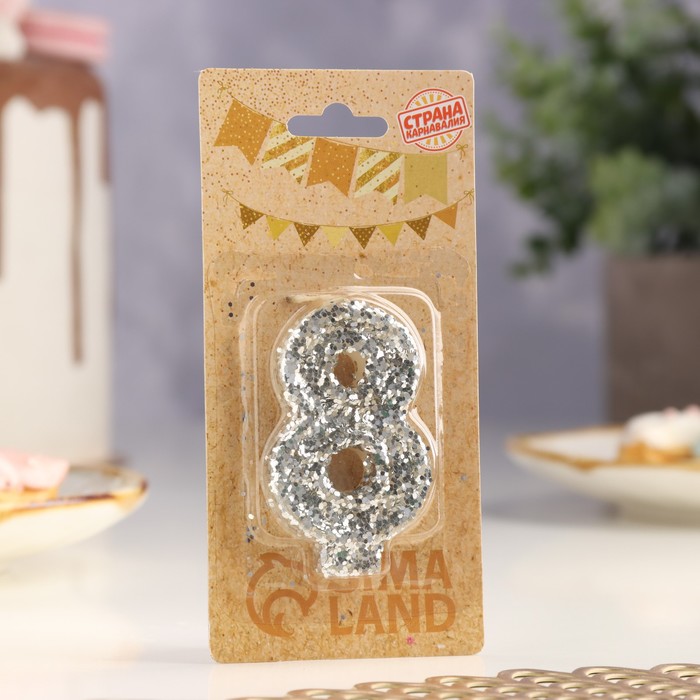 Candle in the cake "Squares", number "8", silver, 6.5x4