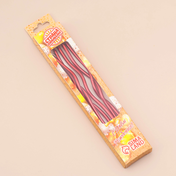 Candles for cake twisted "serpentine", 12 cm, 18 pcs, cocktail, ruby