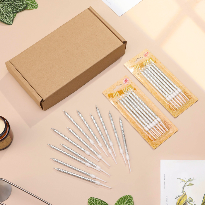 Candles in the Cake "Metallic", 14 cm, 12 pcs, silver