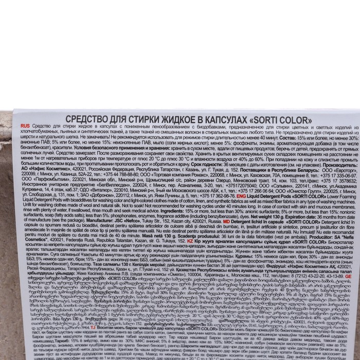 - security. COLOR sort capsules do not cause allergic reactions and are suitable for washing children's linen.