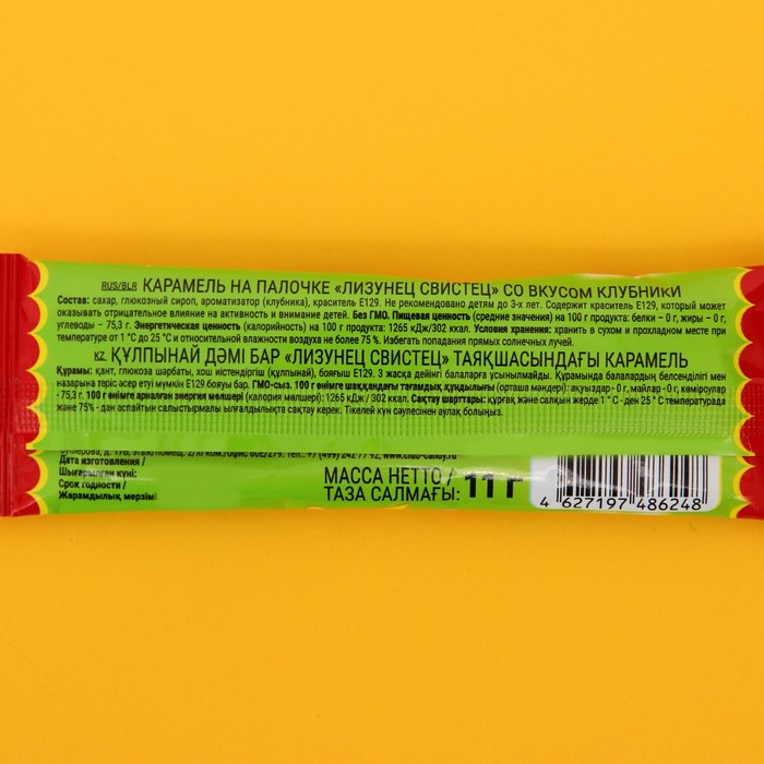 Caramel on the wand "Lizunets Swist" Assorted is a delicious and exciting lollipop on a stick, which can also be used as a toy. Its unique design allows you to use it as a whistle, which makes it even more attractive to children and adults.