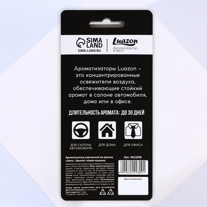 Cardboard flavor on the hook "Auto", aroma new car