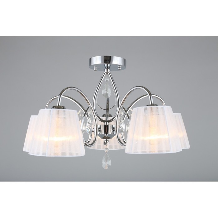 - The chandelier is made in a classic style, decorated with crystal. 5 incandescent lamps with a capacity of 60 watts.
