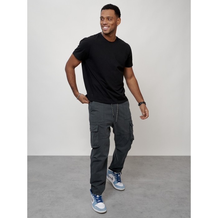 Cargo jeans men, size 44-46, dark gray color