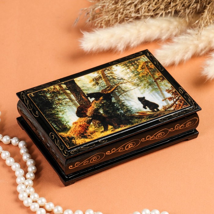 Casket "Bears in the Forest", 10 × 14 cm, lacquer miniature