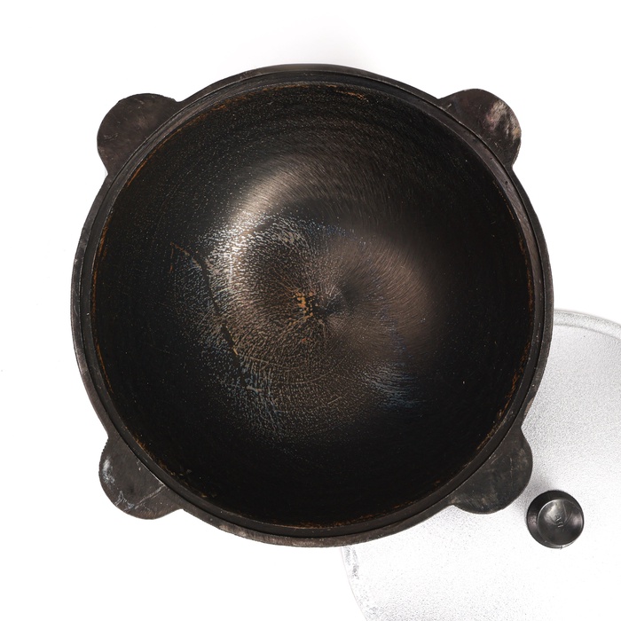Cast iron cauldron, 10 l, flat bottom, aluminum cover
