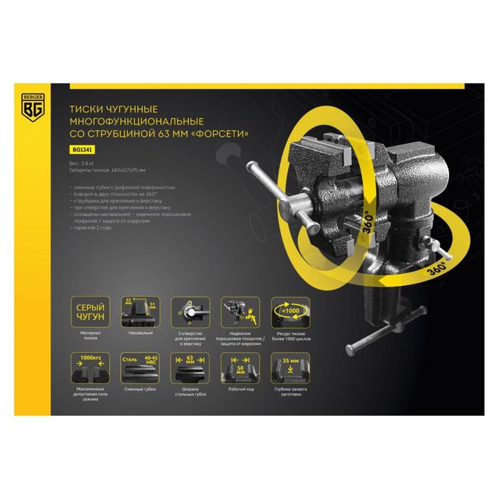 Cast iron grip Berger BG1341 Foress, 63 mm, multifunctional with clamp