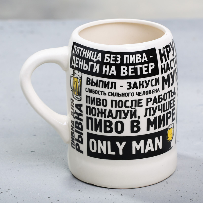 Ceramic beer mug with an opener "Real Man", 600 ml