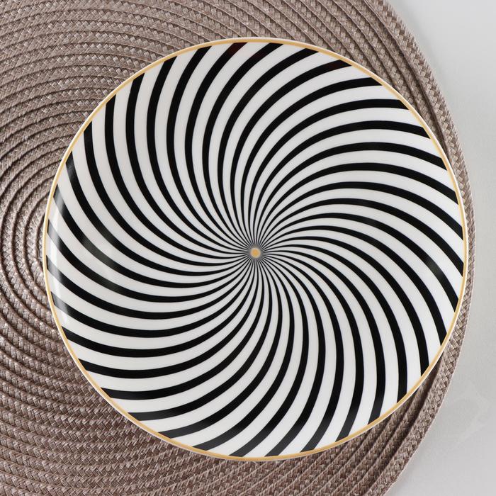 Ceramic dessert “spiral” plate, d = 20.5 cm, black and white color