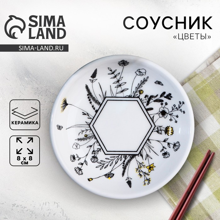 Ceramic “Flowers” sauce, 8.8 cm, white color