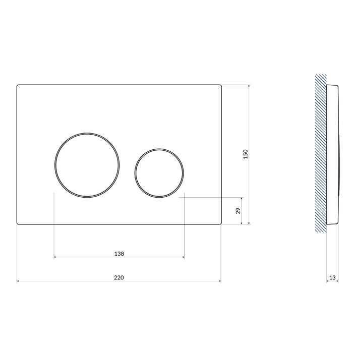 Twins button for a suspended toilet, hidden installation, 2 rinses.