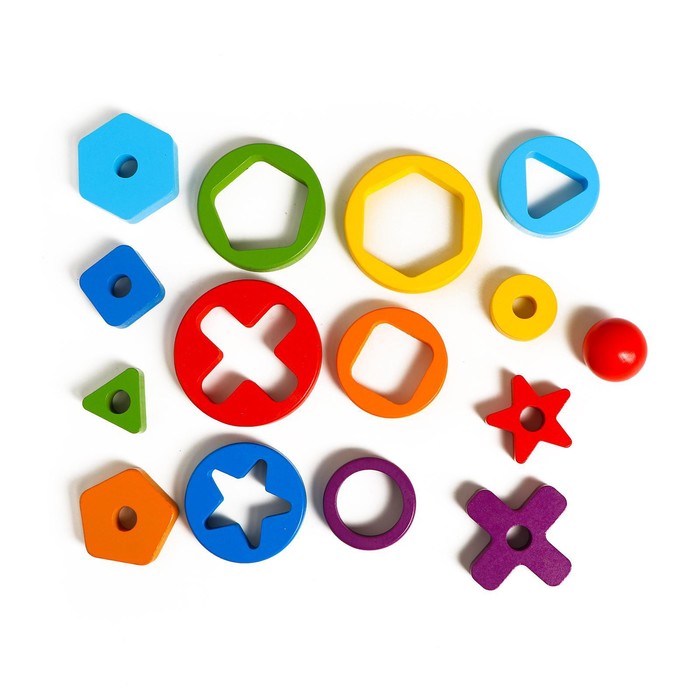 The bright pyramid consists of 15 pleasant to the touch of details, which are made of natural wood and covered with harmless paint. The task of the baby is to choose the figures suitable for each other and arrange them on the basis. This exciting puzzle develops spatial thinking, color perception, logic and fine motor skills of the hands.