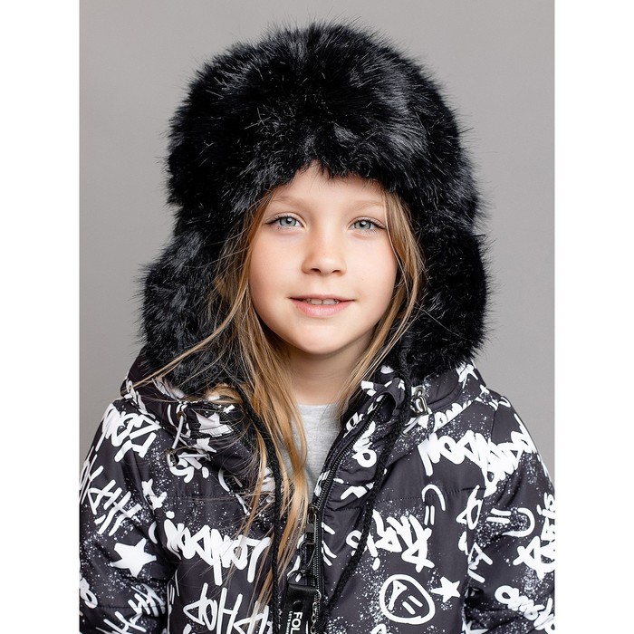 Children's fur cap, size 52, black color