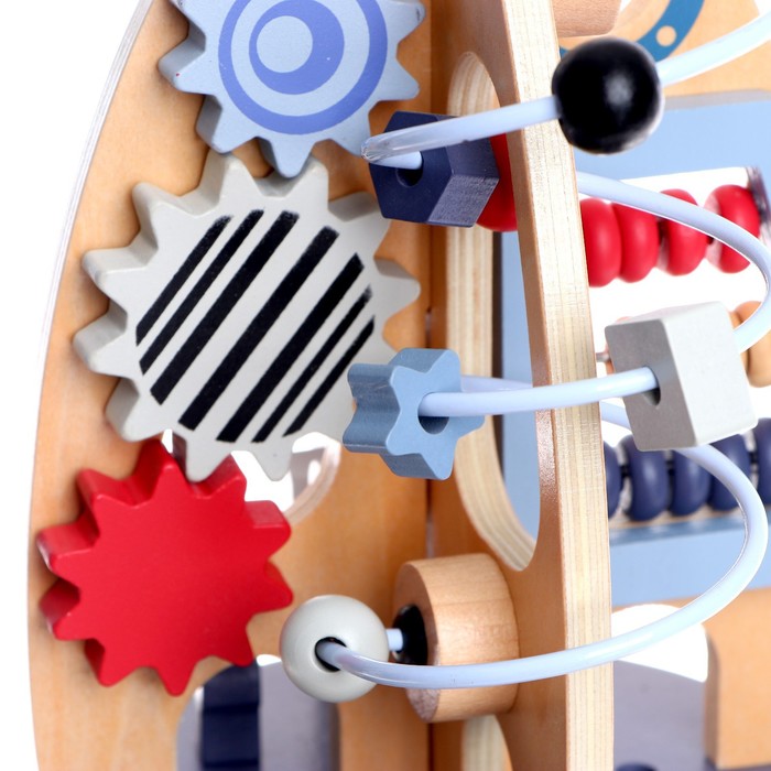 The logical center has many surfaces with different games. There is a serpentine, labyrinth, gear, scores. And it is also made in the form of a space rocket, so the baby will be able to play with astronauts in plot games.