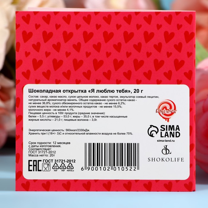 Chocolate postcard "I love you", 4*5 g
