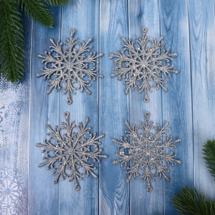 Christmas tree decoration "Snowflake" (set 4 pcs) D-9 cm, mix