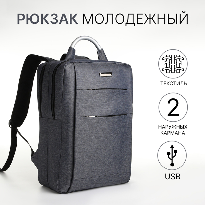 City backpack on a zipper, 2 pockets, with USB, blue color