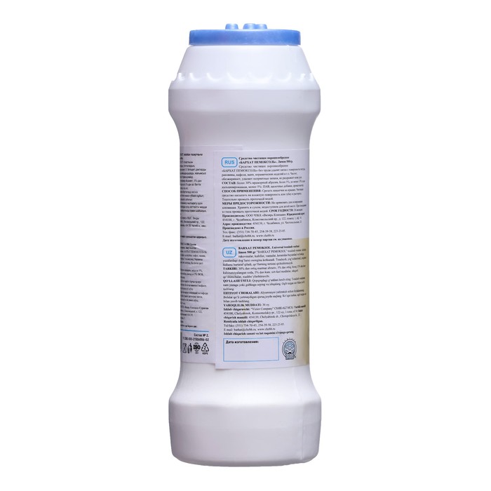 Method of application: Cut the cones on the lid. Pour a cleaning product on a damp surface or sponge and grind. Rinse thoroughly with water.