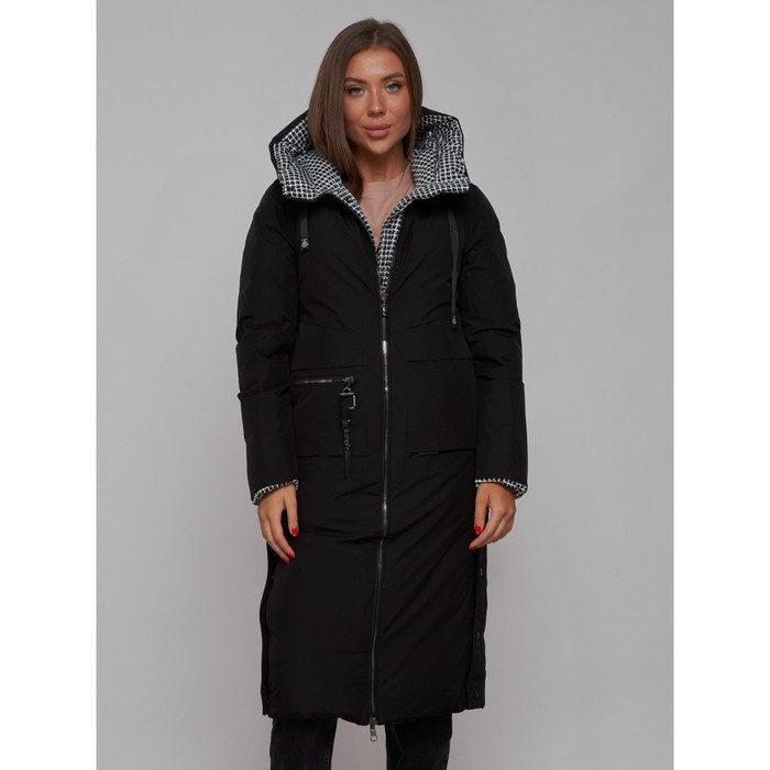 Coat insulated double -sided female, size 46, black color