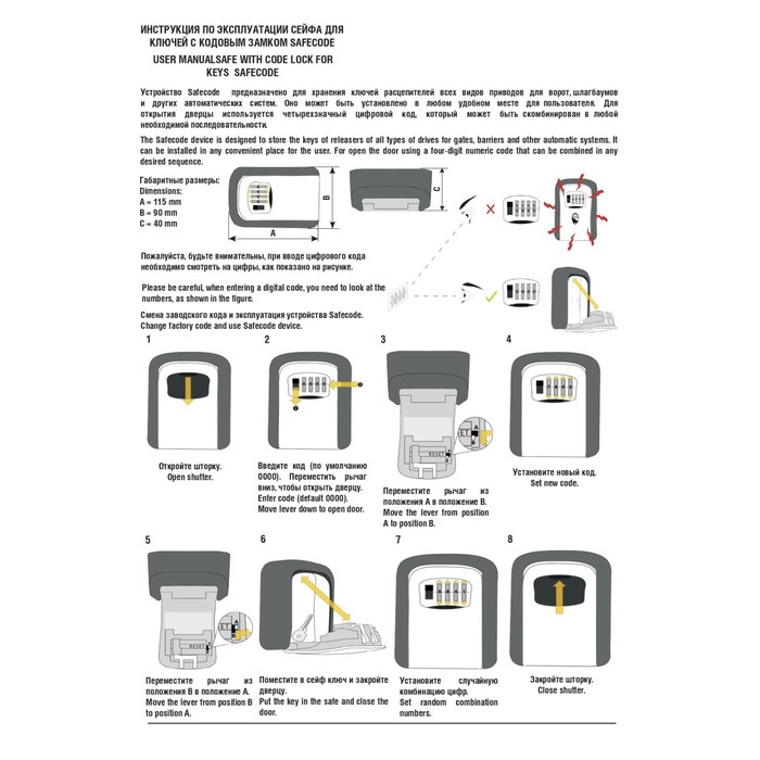 Key with a code lock allows you to conveniently and safely place the keys and other things of small size. The internal space is not divided into separate zones and is not equipped with hooks.