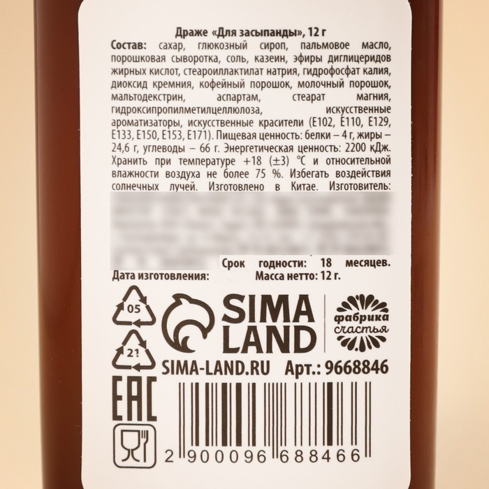 Состав: сахар, глюкозный сироп, пальмовое масло, порошковая сыворотка, соль, казеин, эфиры диглицеридов жирных кислот, стеароиллактилат натрия, гидрофосфат калия, диоксид кремния, кофейный порошок, молочный порошок, мальтодекстрин, аспартам, стеарат магния, гидроксипропилметилцеллюлоза, искусственный Fragrances, artificial dyes (E102, E110, E129, E133, E150, E153, E1741).