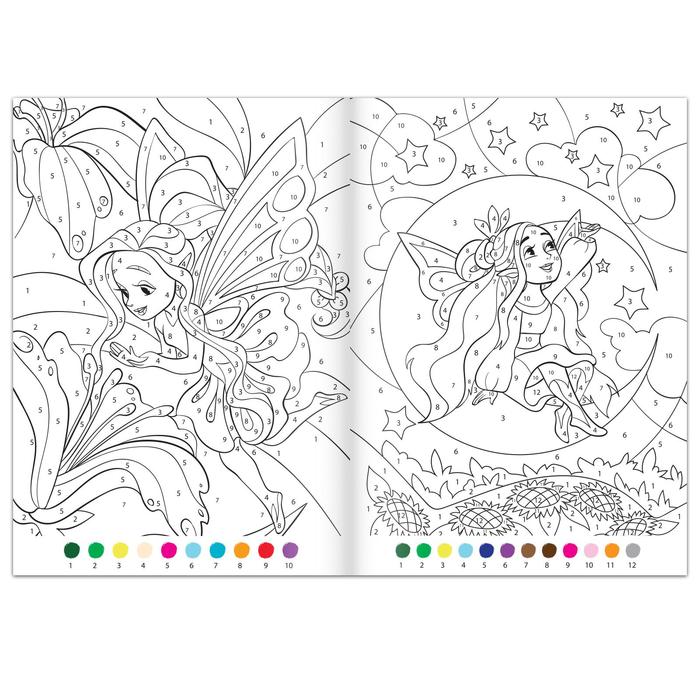 Coloring on the numbers "Beautiful Fairies", 16 pp., A4 format