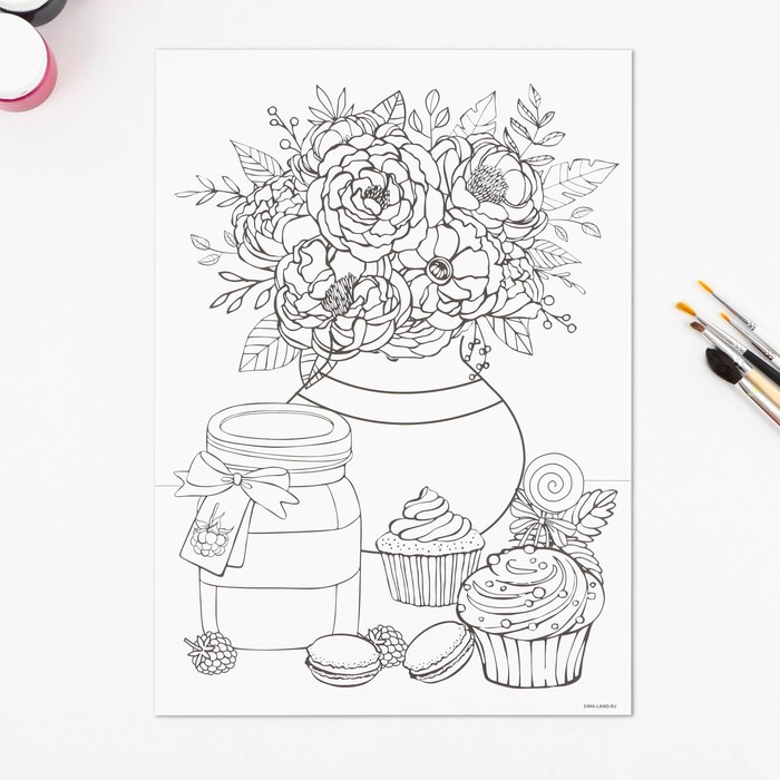 Coloring with watercolor "Still lifes", A4