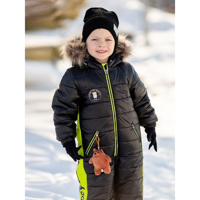 The overalls for the boy Freddy is a stylish black overalls from the new winter collection. It is made of plain glass with bright salam details and lining.