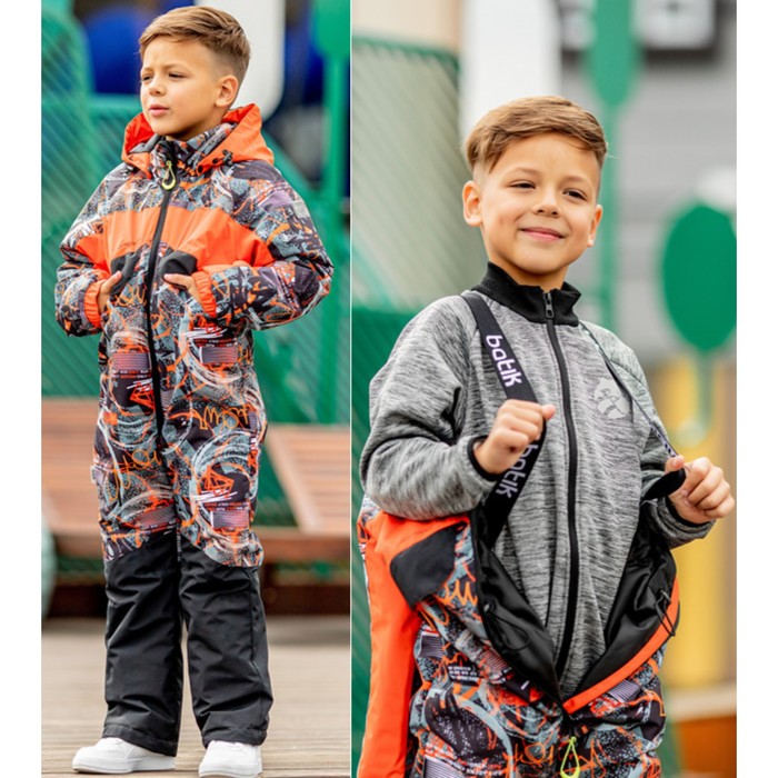 A bright, printed active overalls is made for boys and girls. Front external breast pockets, a weight on the waist and on the bottom of the trousers. The reflective elements will not leave the child unnoticed in the dark, and the ergonomic cut and membrane tissue with water -repellent impregnation will provide a comfortable pastime in any weather.