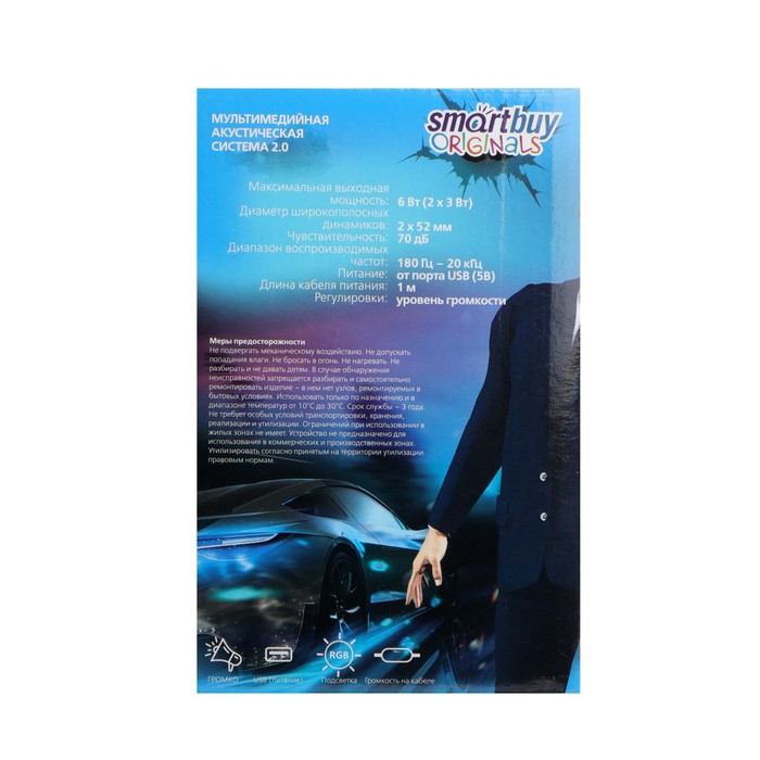 Computer speakers 2.0 Smartbuy Rebel, 6 W, USB, backlight, black