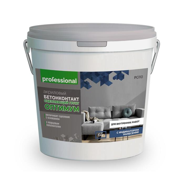 The concrete contact of the Optimum Clushes for internal work PG110 TM "Professional" with quartz filler is used for preliminary processing of concrete, concrete blocks, foam concrete products, dense mineral bases before applying gypsum and cement leveling plasters, latex putty, adhesive stream Inside the premises.