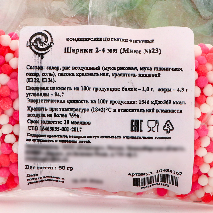 Confectionery Sprinking "Blinking Balls", red, white, pink, 20 g